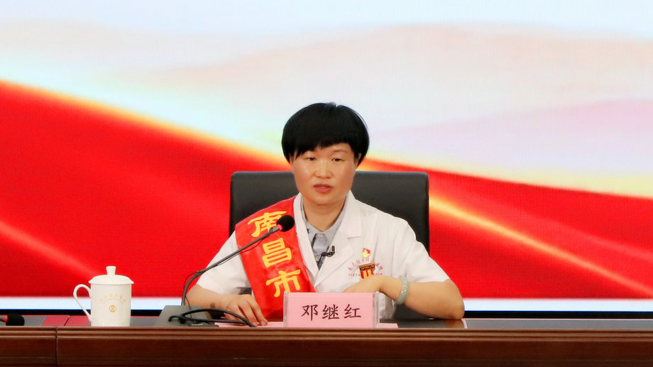 邓继红结合自身经历和工作实际,以朴实的语言、真挚的情感,用一件件生动的实例讲述了她在平凡岗位上艰苦奋斗、勇于创新、甘于奉献的奋斗历程。特别是作为军人的后代和一名中国共产党党员,在新冠疫情期间,与经开医院的同事们齐心协力保障群众生命安全的故事,让大家钦佩不已,赢得了现场阵阵掌声。