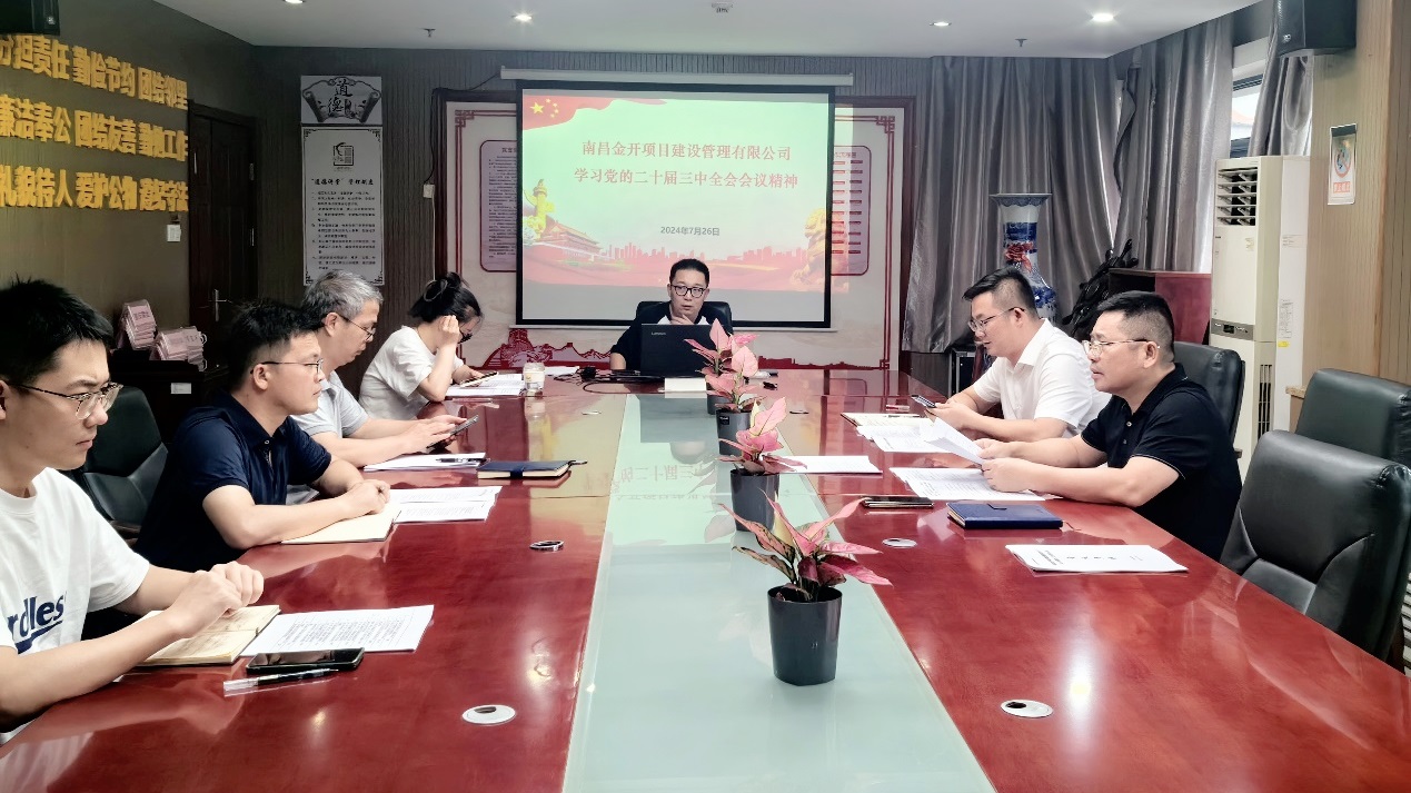 7月26日,项目公司党支部组织全体党员干部深入学习贯彻党的二十届三中全会精神。会议强调,项目公司要认真学习贯彻党的二十届三中全会精神,坚持和加强党的全面领导,深入推进全面深化改革,坚定不移走高质量发展道路。项目公司要全面聚焦主责主业,围绕实施工进度管理和安全生产管理两个重点,狠抓工作落实,找准结合点、切入点、发力点,着力抓关键、扬优势、补短板、强弱项等重点难点工作取得新进展,助推企业成为具有核心竞争力的一流企业。