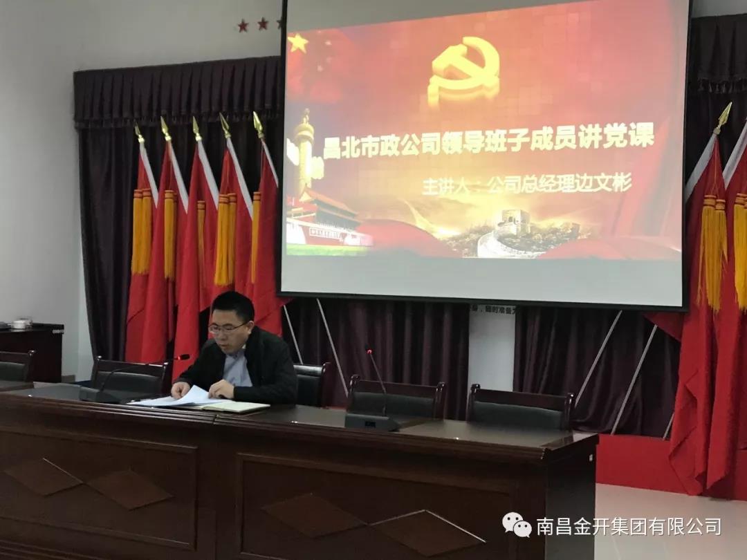 为认真贯彻落实党的十九大精神,让十九大精神入脑入心,3月30日,按照金开集团党委部署的安排,集团下属市政公司党支部组织开展了2018年“领导班子讲党课”活动。集团党委委员、副总经理,下属市政公司总经理边文彬以“不忘初心、牢记使命、奋力前行”为题,为支部全体党员、公司副主管及以上人员上了一堂专题党课。